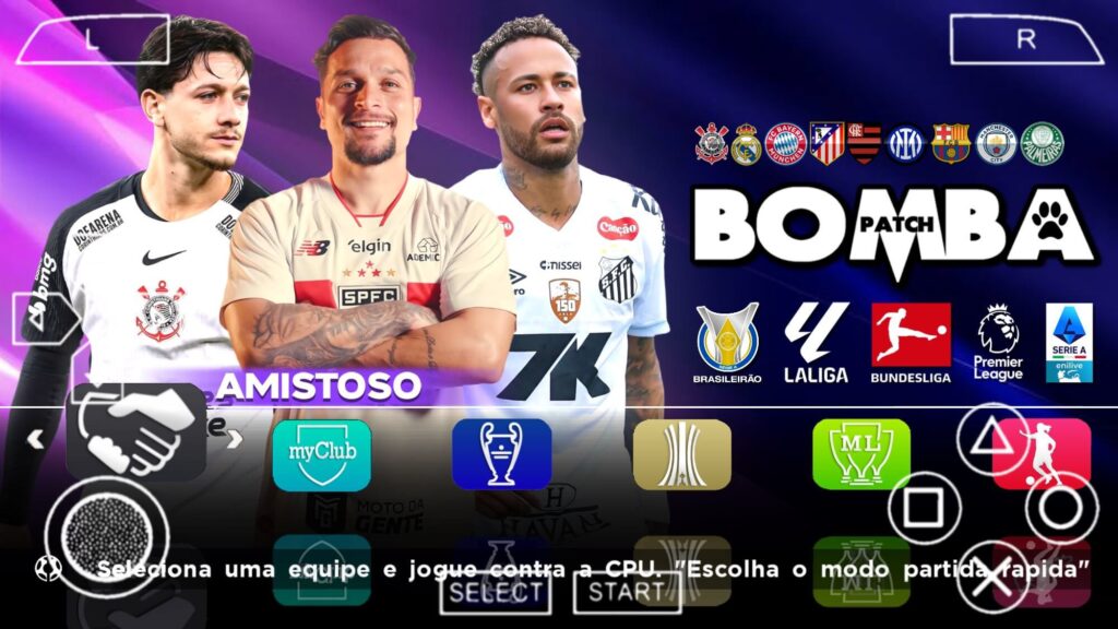 Já disse acima que a Master League é um dos melhores modos de jogo do Bomba Patch 2026 PPSSPP, e vou mostra o motivo. Na Master League você pode iniciar com um time do jogo, ou criar o seu do zero, no seu time você precisa primeiro ser um bom gestor, controlar as finanças, fazer contratações, renovar contratos e vender jogadores. Você também é o técnico, precisa arrumar seu time antes do jogo, fazer a formação do time e durante a partida boas substituições. Seu time compete a liga nacional, a copa nacional, e a copa do continente, se escolher um time brasileiro, você joga o Brasileirão, Copa do Brasil e Libertadores, talvez a Copa Sul Americana, e se ganhar a Libertadores, pode disputar o Mundial de Clubes do ano.