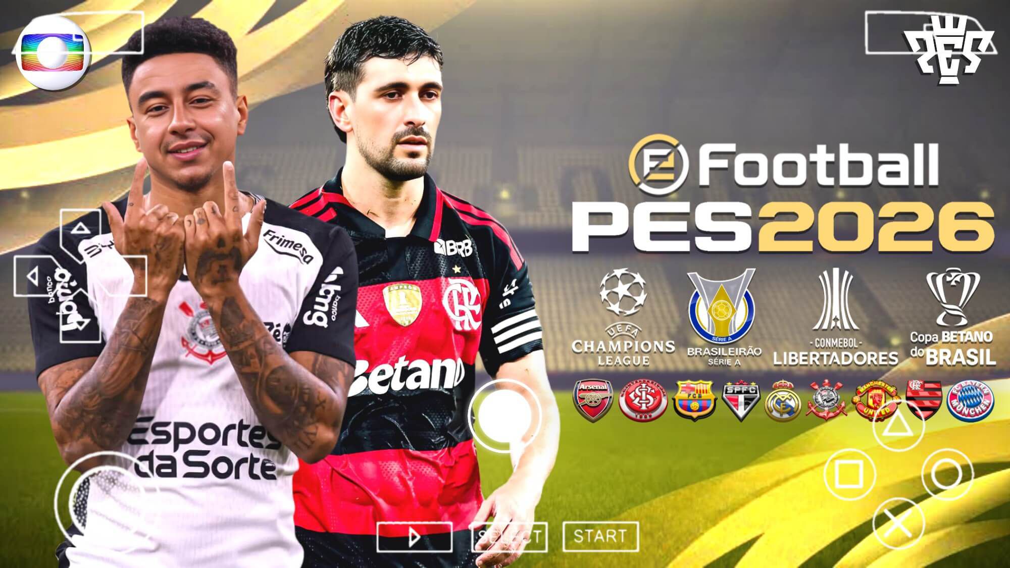 Essa é a primeira versão que eu venho lhes mostrar, Efootball Pes 2026 PPSSPP Brasileirão e Europeus. Uma versão do jogo focada no Brasileirão série A & B, onde todos os times estão atualizados com seus jogadores atuais, uniformes, e com seu estádio. Mas não para por aí, nessa versão também tem as ligas do futebol europeu, e todos os elencos também estão atualizados, com seus atuais jogadores, uniformes e estádios. Também é possível jogar a Conmebol Libertadores e a Copa do Brasil no Efootball Pes 2026 PPSSPP Brasileirão e Europeus. No futebol europeu, você pode jogar a incrível Uefa Champions League.