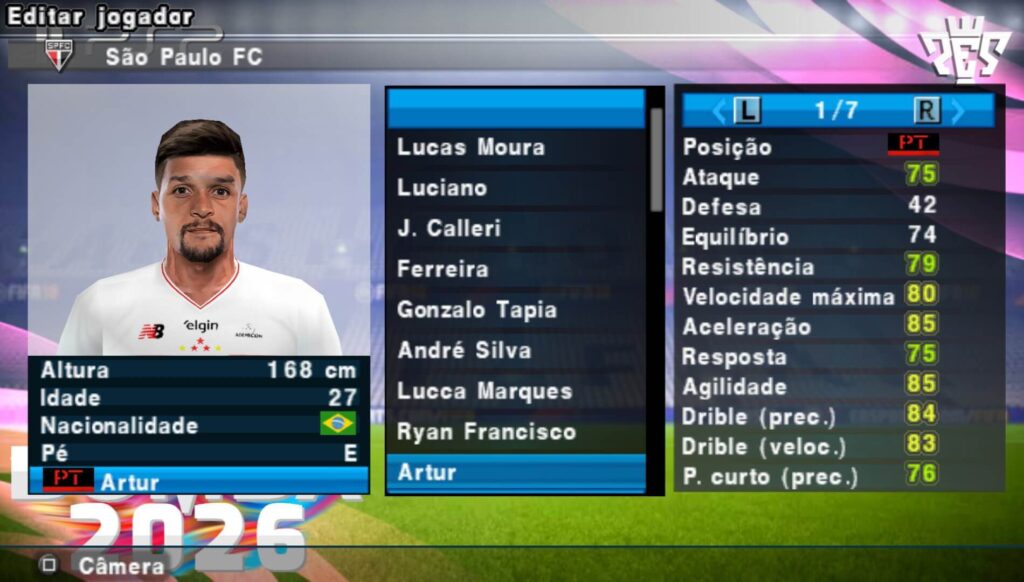 A câmera oficial do Bomba Patch 2026 PPSSPP é o que chamamos de câmera normal, é aquela câmera que é bem próxima, mas mudamos para a angular nas configurações, porém, ainda é muito próxima, você fica refém do mapa para ver onde estão outros jogadores, não permitindo você fazer grandes jogadas, mas isso mudou, colocamos a câmera de ps4, que é um pouco mais longa, dando um campo de visão muito alto, permitindo fazer grandes jogadas, o ponto negativo, é que o cursor não fica fixado na cabeça do jogador, podendo causar uma certa confusão. A câmera de Ps5 veio para mudar isso, com ela o cursor fica fixado na cabeça do jogador, e detalhe, a câmera é mais longa ainda, caso queira jogar com a câmera do ps2, é possível, mas ela não é tão longa quanto as de ps4 e ps5.