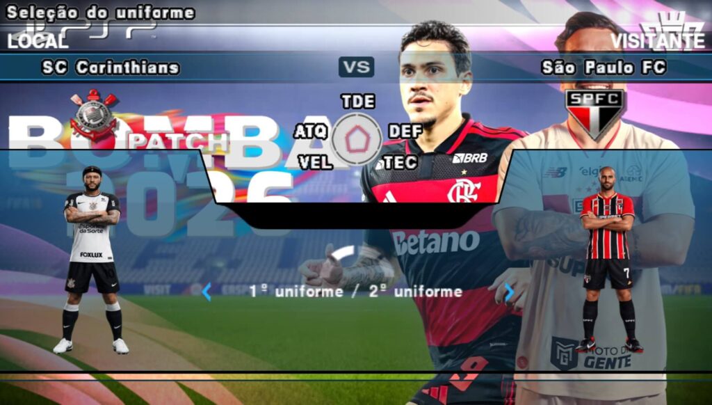 Está excelente os gráficos do Bomba Patch 2026 PPSSPP, isso porque você pode aumentar a resolução do emulador PPSSPP sem se preocupar com os travamentos, o emulador está extremamente otimizado, dependendo do seu aparelho, você pode colocar o jogo em até 8x de resolução, sem se preocupar com travamentos. Mas, também fizemos nossa parte, deixamos o jogo ainda mais realista, melhoramos as faces dos jogadores, qualidade dos uniformes, melhoramos os gramados dos estádios, deixamos as torcidas mais coloridas, pois bem, melhoramos tudo o que foi possível para deixar o jogo mais bonito. Mais incrível ainda, é que a jogabilidade do Bomba Patch 2026 PPSSPP é muito boa, e você ainda pode mudar de lugar os botões do PPSSPP. Se quiser, você também pode usar um controle gamepad para jogar no PPSSPP e melhorar a jogabilidade.