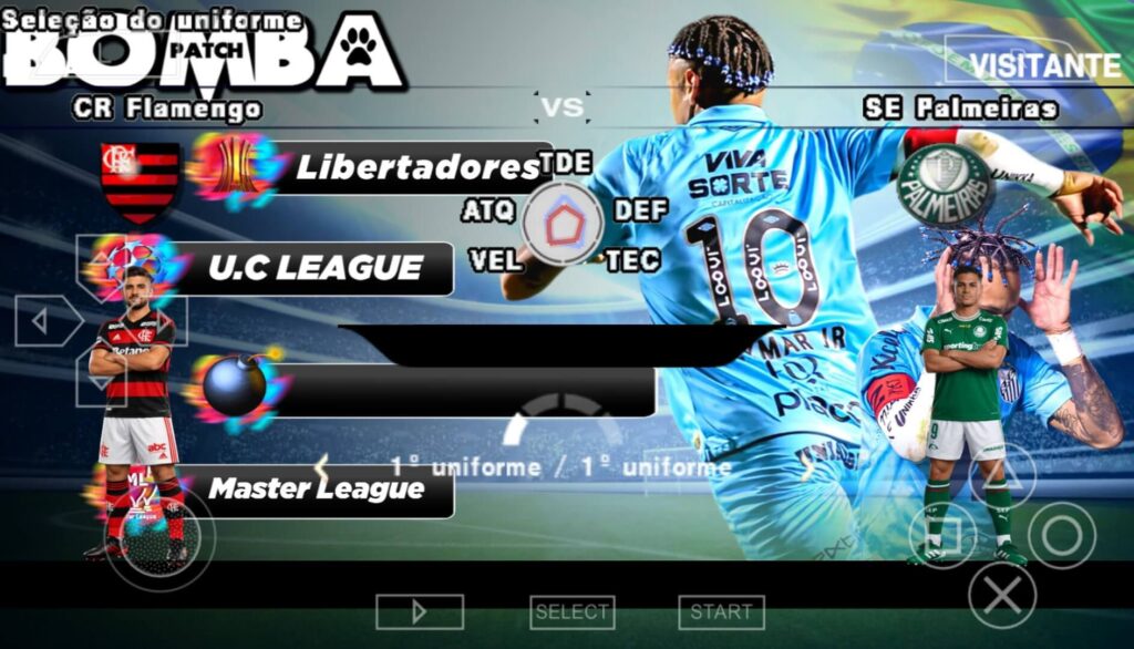 Já disse acima que a Master League é um dos melhores modos de jogo do Bomba Patch 2026 PPSSPP, e vou mostra o motivo. Na Master League você pode iniciar com um time do jogo, ou criar o seu do zero, no seu time você precisa primeiro ser um bom gestor, controlar as finanças, fazer contratações, renovar contratos e vender jogadores. Você também é o técnico, precisa arrumar seu time antes do jogo, fazer a formação do time e durante a partida boas substituições. Seu time compete a liga nacional, a copa nacional, e a copa do continente, se escolher um time brasileiro, você joga o Brasileirão, Copa do Brasil e Libertadores, talvez a Copa Sul Americana, e se ganhar a Libertadores, pode disputar o Mundial de Clubes do ano.