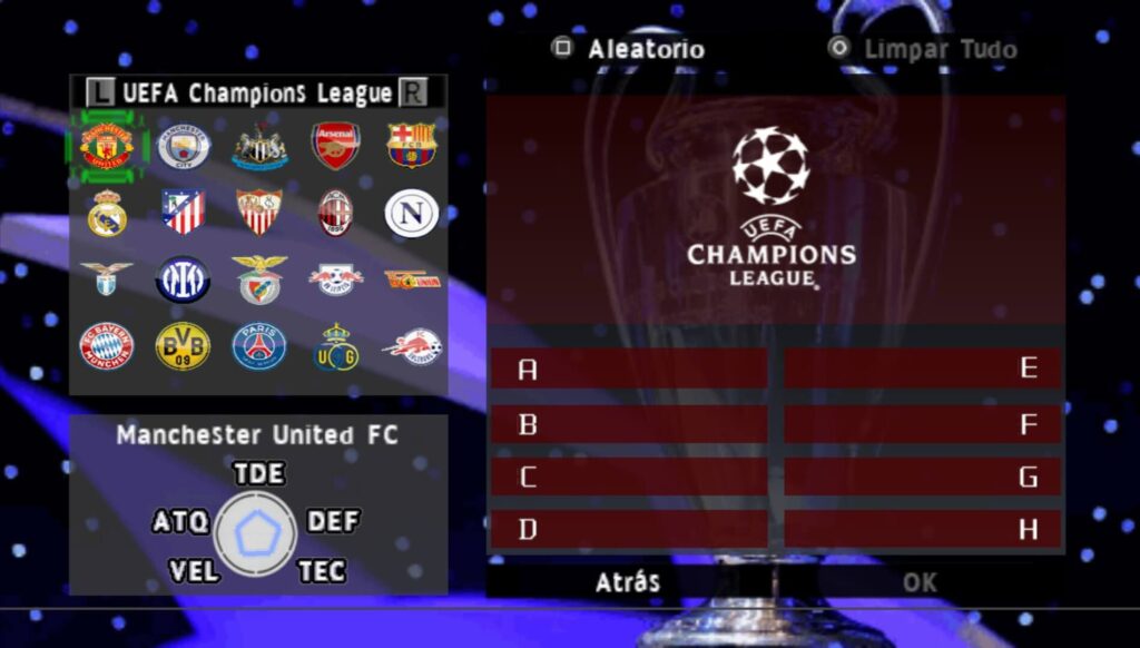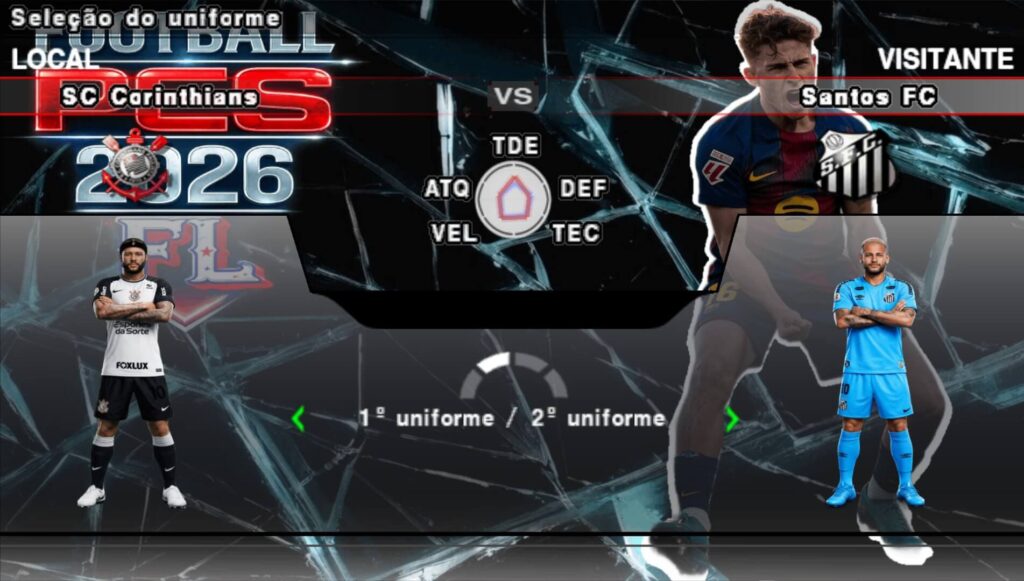 Efootball Pes 2026 PPSSPP Europeus, é uma versão do jogo que não contém times brasileiros, é focado somente nos times europeus que jogam a Uefa Champions League, Uefa Europa League e Uefa Conference League. Geralmente as principais ligas são a Premier League, Ligue 1, Bundesliga, Série A Tim, La Liga e os times que ficam na Uefa A, B e C, que precisam estar alí para completar a Uefa Champions League. Existe uma versão alternativa no Efootball Pes 2026 PPSSPP Europeus, que é a versão que contém como DLC, a Conmebol Libertadores, aí sim você tem alguns times brasileiros e sul americanos que jogam a competição, mas não existe na Master League e no Rumo ao Estrelato.