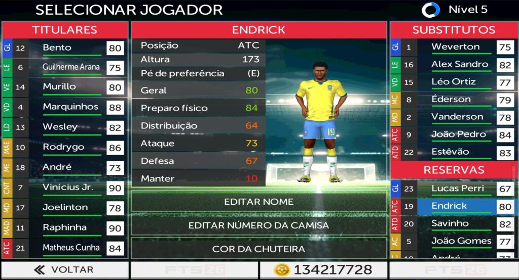 As faces dos jogadores são bem realistas parecendo de FIFA e PES de console e computador. Sem contar nas contratações que os clubes fazem, todos as equipes foram atualizadas, com seus novos jogadores da última janela de transferência. Você sabia que os cabelos dos jogadores estão todos atualizados no First Touch Soccer 2026? Assim que um jogador muda seu cabelo, no First Touch Soccer 2026, a comunidade já coloca nele e publica para a galera jogar.