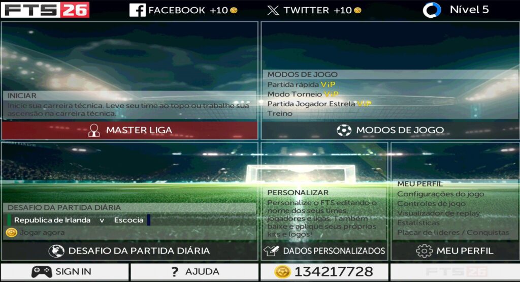 Os modos de jogo do First Touch Soccer 2026 assim como eu disse acima, são iguais os do FIFA e PES de console e computador, vamos lá, começando pelo jogador estrela que você faz a carreira apenas com um jogador, recomendo criar seu próprio jogador para ser mais realistas. Também tem a Master League que basicamente você é o dono e técnico do clube, você faz tudo pelo clube e o time.