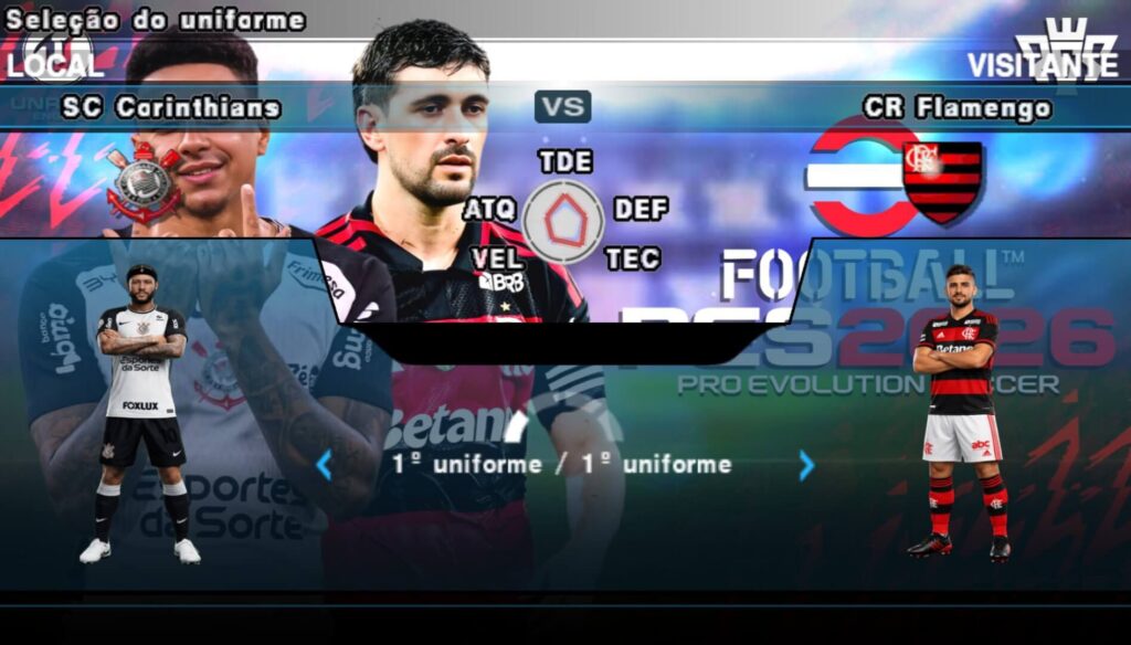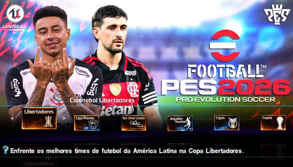 Essa é a primeira versão que eu venho lhes mostrar, Efootball Pes 2026 PPSSPP Brasileirão e Europeus. Uma versão do jogo focada no Brasileirão série A & B, onde todos os times estão atualizados com seus jogadores atuais, uniformes, e com seu estádio. Mas não para por aí, nessa versão também tem as ligas do futebol europeu, e todos os elencos também estão atualizados, com seus atuais jogadores, uniformes e estádios. Também é possível jogar a Conmebol Libertadores e a Copa do Brasil no Efootball Pes 2026 PPSSPP Brasileirão e Europeus. No futebol europeu, você pode jogar a incrível Uefa Champions League.