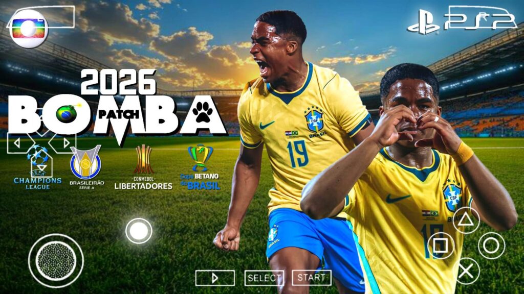 É claro que a galera não ia deixar de jogar o Bomba Patch só porque não possuem um PlayStation 2 ou um computador para emular o jogo. Bomba Patch 2026 PPSSPP, uma versão do jogo criada em cima do Pro Evolution Soccer (Pes). Nesse Bomba Patch 2026 PPSSPP tem basicamente tudo que os fãs desejam, inclusive a Master League e o Rumo ao Estrelato, junto com uma narração brasileira e os placares oficiais das ligas, o jogo fica ainda mais sensacional. Bomba Patch 2026 PPSSPP também é 100% atualizado, e continua recebendo atualização semanalmente, e ainda é de graça, tanto o emulador quando a ISO do Bomba Patch 2026 PPSSPP, aproveite.